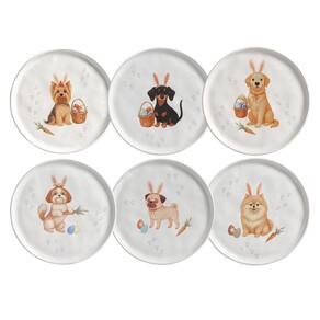 Jogo De Pratos Sobremesa Em Cerâmica Bio Doguinhos Com 6 Peças 22cm Porto Brasil -