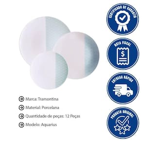 Jogo De Pratos Tramontina Aquarius Em Porcelana Decorada 12 Peças - 96589055