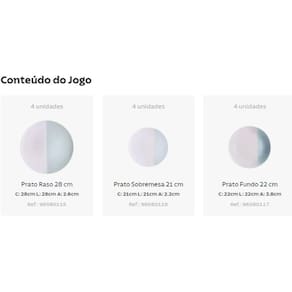 INFORMAÇÃO DOS PRATOS DE PORCELA TRAMONTINA 12 PEÇAS