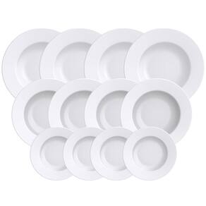 Garantia: 90 dias / Peso: 6,248kg / Cor predominante: branco / Referência: 7908538103473 Dimensões do prato de sobremesa: 21cm (D) x 2cm (A); Dimensões do prato fundo: 23cm (D) x 3,3cm (A); Dimensões do prato raso: 28cm (D) x 2,5cm (A); Material: porcelana.