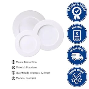 Você recebe uma garantia legal de 90 dias para eventuais vícios ou de fabricação, assegurando sua satisfação com o produto. supplier_declared_dg_hz_regulation: Não aplicável | Bullet_point0: 0 | Bullet_point1: 1 | Bullet_point2: 2 | Tipo de prato de louça: Raso, Fundo, Sobremesa | Formato de venda: Kit | Unidades por kit: 12 | Material: Porcelana | Diâmetro: Não aplica | Forma: Redonda | Linha: Santorini | Utilizações seguras: Lava louças | Cor: Branco | É apto para lava-louças: Sim | Principais Características do Produto: Porcelana, Decorado | Fabricante: Tramontina | Peso Líquido: 0.0000 | Cubagem: 0.030294 | Modelo: Santorini 96589/025 | EmbalagemComprimento-cm: 33 | EmbalagemAltura-cm: 34 | Dias Fornecedor: 0 | EmbalagemLargura-cm: 27 | Marca: Tramontina