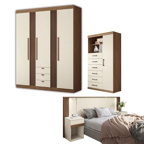 O Guarda Roupa possui quatro gavetas excelente para acomodar todas as suas roupas, contando com seis prateleiras perfeitas para guardar cobertores. Acompanha três cabideiro para pendurar as roupas com organização e segurança.