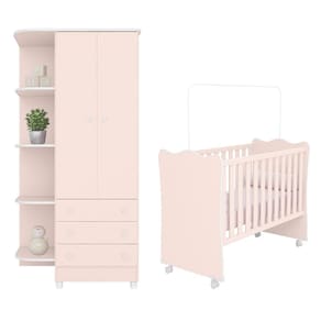 Jogo de Quarto Infantil Doce Sonho Guarda Roupa 2 Portas e Berço com Rodízio - Qmovi O Jogo de Quarto Infantil Doce Sonho possui design clean e delicado, perfeito para decorar e organizar o quartinho do bebê. Ele é composto pelo Guarda-Roupa Doce Sonho com amplo espaço garantindo praticidade para o dia a dia. Já o Berço Doce Sonho foi projetado para proporcionar a segurança e o conforto que seu filho merece.