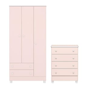 Guarda Roupa Infantil 3 Portas e 2 Gavetas Doce Sonho com Pés - Qmovi Estrutura em MDP Pintura UV atóxica 3 Portas 2 Gavetas Corrediças metálicas Puxadores em forma de estrela Prateleiras Cabideiro Pés em PVC Maior organização e praticidade