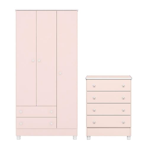 Jogo de Quarto Infantil Doce Sonho Guarda Roupa 3 Portas e Cômoda 4 Gavetas com Pés - Qmovi Com o Jogo de Quarto Infantil Doce Sonho você terá maior funcionalidade e elegância no quarto do bebê. Ele conta com Guarda-Roupa e a Cômoda Doce Sonho com amplo espaço para guardar e organizar os pertences de forma funcional para o dia a dia. Seus puxadores exclusivos em forma de estrela vão transformar o ambiente deixando-o mais divertido e charmoso.