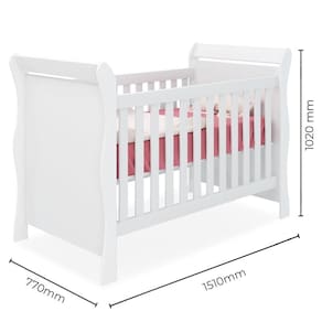 Estrado regulável em três alturas: 1: 370 milímetros, 2: 500 milímetros, 3: 630 milímetros (altura do estrado em relação a borda superior da grade). Possibilita que conforme o crescimento do bebê, mais profundo fica o berço