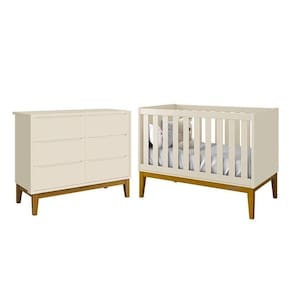 Jogo De Quarto Infantil Classic Cômoda 6 Gavetas E Berço Areia Fosco Com Pés Amadeirado - Reller Móveis Areia Fosco