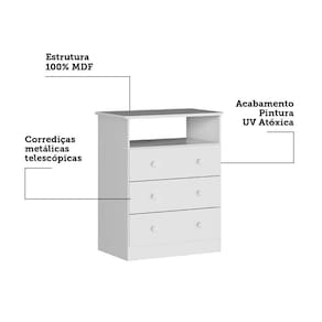 Tamanho da Cômoda (L x A x P): 65,5 x 82,6 x 42,5 cm