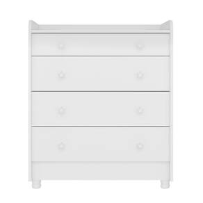 Cômoda Infantil 4 Gavetas Doce Sonho com Trocador e Pés - Qmovi Estrutura em MDP Pintura UV atóxica 4 Gavetas Corrediças metálicas Puxadores em forma de estrela Trocador embutido Sistema antitombamento Maior organização e praticidade Pés em PVC Não acompanha colchonete