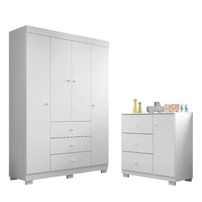 Jogo De Quarto Infantil Duda Com Guarda Roupa 4 Portas E Cômoda Branco - Phoenix Baby Branco Jogo de Quarto Infantil Duda com Guarda Roupa 4 Portas e Cômoda - Phoenix Baby O Jogo de Quarto Duda é compacto, delicado e clássico. É composto por um guarda-roupa e uma cômoda que são peças importantes para o quarto e para montar o visual perfeito, esse modelo é uma ótima opção. Ele possui compartimentos internos para roupas e objetos em geral ficarem organizados de maneira prática para o dia a dia. Guarda Roupa Infantil Duda 4 Portas e 3 Gavetas - Phoenix Baby - Estrutura em MDF - Pintura UV alto brilho - 4 Portas - Dobradiças metálicas - 3 Gavetas - Corrediças telescópicas - Cabideiro - Prateleiras - Puxadores em PVC com formato ergonômicos - Pés inclusos - Amplo espaço interno