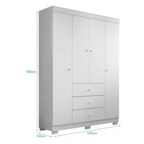 Dimensões: Tamanho do Guarda-Roupa (L x A x P): 132 x 188 x 44 cm Tamanho da Cômoda (L x A x P): 91 x 91 x 42 cm