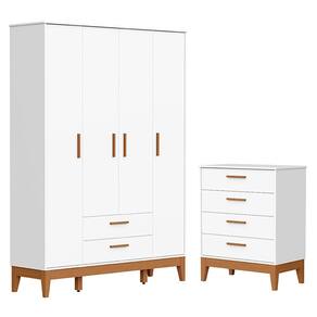 Jogo de Quarto Infantil Flip Guarda Roupa 4 Portas e Cômoda 4 Gavetas - Reller Móveis