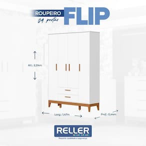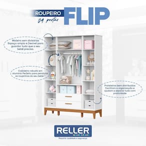 Guarda Roupa Infantil Flip 4 Portas e 2 Gavetas - Reller Móveis