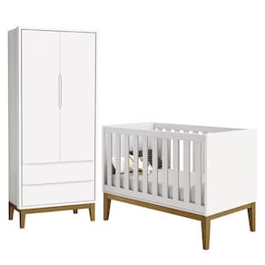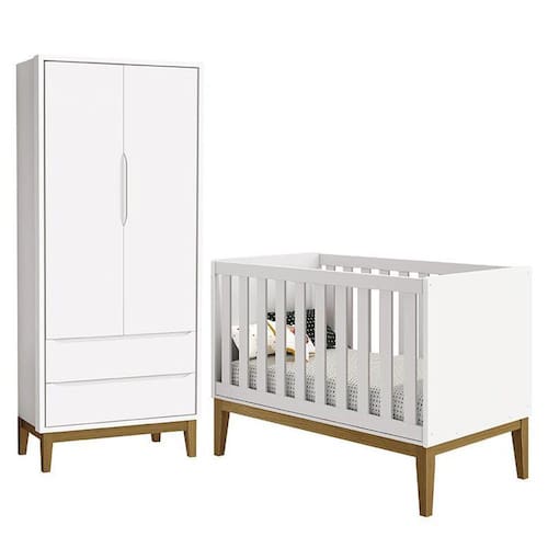 Jogo de Quarto Infantil Guarda Roupa 2 Portas e Berço Classic com Pés Amadeirado - Reller Móveis O Jogo de Quarto Classic é baseado no estilo clean e traz consigo conceito de elegância e charme. É composto pelo Guarda-Roupa 2 portas Classic, perfeito para organizar os pertences do bebê, ela conta com corrediças telescópicas, cabideiro metálico e puxadores embutidos. E pelo Berço Classic, que acompanha o desenvolvimento da criança se transformando em uma linda mini cama, auxiliando na transição do berço para caminha.