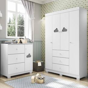 O Jogo de Quarto Infantil Guarda Roupa e Cômoda Ane Branco, da Phoenix Baby é compacto e clássico, perfeito para o quarto dos pequenos, confira!