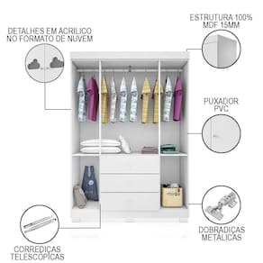 Conteúdo da Embalagem: 1 Guarda Roupa, 1 Cômoda.