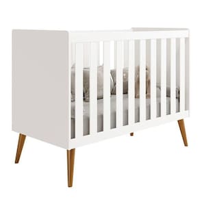 Berço Americano Isis - Reller Móveis - Estrutura 100% MDF - Pintura UV atóxica - Acabamento fosco - Certificado pelo INMETRO 009882/2022 - Padrão americano - Cantos arredondados - Transforma-se em mini cama - Estrado em MDF - 3 Regulagens de altura do estrado - Acompanha suporte para mosquiteiro - Pés estilo retrô em madeira - Colchão recomendado 70x130 cm - Não acompanha colchão