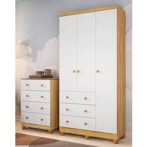 Jogo de Quarto Infantil Júnior Guarda Roupa 3 Portas e Cômoda 4 Gavetas - Móveis Peroba