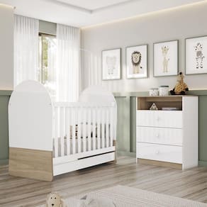 O Jogo de Quarto Infantil Magia com Cômoda e Berço é o conjunto perfeito para transformar o quarto do bebê com estilo e praticidade. Inclui cômoda de 3 gavetas e berço americano que se transforma em mini cama, combinando segurança, conforto e funcionalidade.