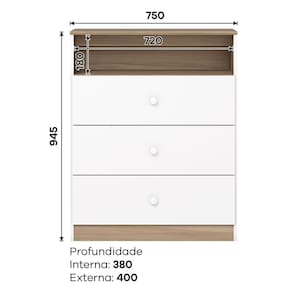 Tamanho da Cômoda (L x A x P): 75 x 94,5 x 40cm