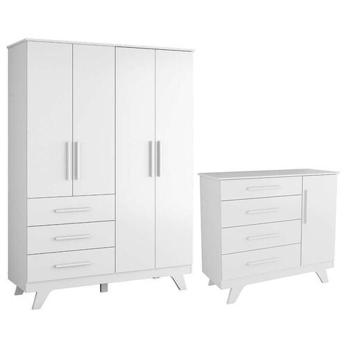 O Jogo de Quarto Infantil Retrô é perfeito para quem busca um ambiente funcional e com charme clássico. O guarda-roupa conta com 4 portas, 3 gavetas com corrediças telescópicas, cabideiros metálicos e prateleiras. Com estrutura em MDF, pintura UV atóxica e puxadores em MDF revestidos, oferece amplo espaço interno e acabamento refinado. A cômoda possui 1 porta, cabideiro, prateleira e 4 gavetas com corrediças telescópicas. Também em MDF com pintura UV atóxica, combina praticidade e elegância. Conjunto ideal para organizar o quarto do bebê com estilo, segurança e qualidade.