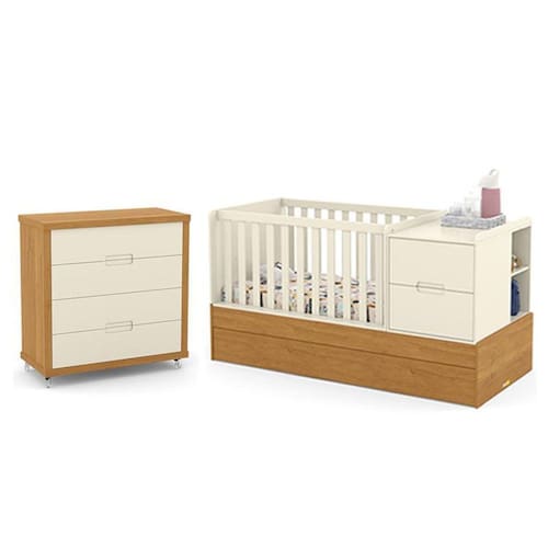 O Jogo de Quarto Infantil Tutto New conta com design moderno e funcional, é composto por uma linda Cômoda com amplo espaço interno para organizar as roupinhas e acessórios, e um Berço Multifuncional que conta com trocador, gaveteiro e cama auxiliar, inclusos no mesmo móvel. E não para por aí, ele acompanha o desenvolvimento do seu filho se transformando em uma linda mini cama. O quartinho do bebê será único, completo e especial com essa combinação.