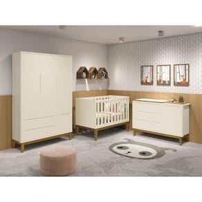 Jogo De Quarto Para Bebê Completo 3 Portas Classic New Areia Fosco Com Madeira - Moveisaqui - Bege