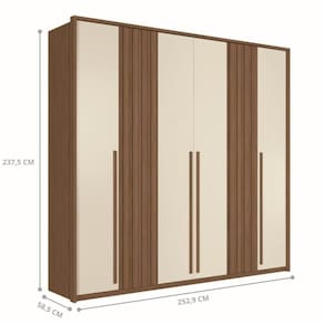 O Guarda Roupa de Casal possui 6 portas com dobradiças metálicas e possui 3 cabideiros do tipo oblongo que proporciona mais rigidex e durabilidade para comportar os mais variados tipos de roupas penduradas. Além disso conta com 7 prateleiras para deixar ainda mais organizado os seus pertences.