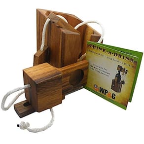 É hora de comemorar. Bem, este quebra-cabeça de madeira de alta qualidade pode ser a estrela da festa. Este grande quebra-cabeça clássico é na verdade um “armário de garrafas”. É um ótimo presente para qualquer evento com ou sem a garrafa. Pode ser facilmente ajustado para caber em diferentes tamanhos de garrafas e é fácil trancar a garrafa ao usar as instruções fornecidas. Observe que a cor da corda pode variar.