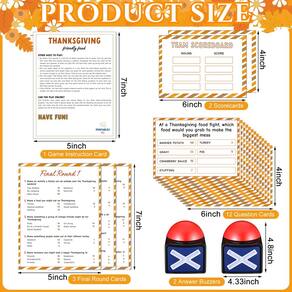 Características: Eleve suas reuniões de férias com nosso jogo de ação de graças para a família! O jogo apresenta regras abertas para um jogo suave e inclui duas campainhas para manter as coisas organizadas. Um papel de anfitrião dedicado melhora a interação, enquanto os gráficos vibrantes o tornam uma escolha de destaque para o Natal. Tamanho: A carta de introdução do jogo e a carta redonda final: 15 x 10 cm O cartão de pontuação e o cartão de perguntas: 17,8 x 12,7 cm A embalagem inclui: 1 x manual de instruções (sem garantia de versão em português). 2 cartões de pontuação. 12 cartões de perguntas. 3 cartas de jogo finais rápidas. 2 buzzers de resposta (pilhas não incluídas) Observações: Medição manual, considere pequenos erros no tamanho. A cor pode existir uma pequena diferença devido a diferentes telas. Nosso produto é adequado para pessoas com mais de 14 anos de idade. - Conjunto de jogo de ação de graças amigável: este jogo de cartas de ação de graças inclui 1 carta de instruções do jogo, 2 cartas de pontuação, 12 cartas de perguntas e 3 cartas de jogo final rápido, 18 cartas no total no pacote, tudo o que você precisa para um divertido teste de perguntas e respostas da festa de Ação de Graças está incluído - Campainhas de jogo: o jogo de rivalidade familiar para adultos com campainha tem regras abertas e instruções fáceis de seguir para garantir um jogo suave; as duas campainhas incluídas alimentadas por 4 baterias (não incluídas) e pressione as campainhas vermelhas para acender e fazer som, o que ajuda a manter o jogo organizado e divertido, tornando-o uma boa adição à sua noite de jogo em família - Material de qualidade: todas as cartas de jogo de feud são feitas de papel de qualidade para garantir uma impressão nítida, não é fácil de desbotar e reutilizável; cada cartão de jogo é cuidadosamente projetado, não apenas bonito, mas também pode adicionar uma atmosfera alegre às suas férias; e você pode aproveitar este jogo em sua festa de férias, se divertir com sua família e amigos e criar boas memórias - Tamanhos de cartas convenientes: com dimensões de cartas de 18 x 12 cm e 15 x 10 cm, este jogo de cartas de feudo de Natal oferece fácil de jogar, e instruções detalhadas do jogo estão incluídas no pacote - Artigos de festa: o jogo de rivalidade familiar de férias é adequado para atividades familiares, festa de ação de graças, festa de Natal, festa de ano novo e outras festas de fim de ano, o que trará diversão ilimitada para você e sua família ou grupos; e o design bonito e ampla variedade de aplicações também o tornam uma escolha versátil para melhorar qualquer festa ou noite de jogo em família