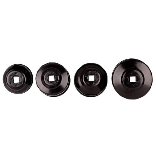 Jogo de Saca Filtro de Óleo de Auto 4 Peças King Tony 9Ae2004- Encaixe 3/8 - Suporta até 115,2 Nm (85 ft.Lbs.)- Revestido com acabamento de óxido eletro-preto para proteção contra ferrugem.- Chave de design tipo copo para reduzir a possibilidade de filtros danificados.- 9AE2-6606: 66 mm(2-19/32)-6 flutesFiat (Punto, 1.2), Renault (Clio1.2 Express, Kangoo, Rapid, Twingo), etc...- 9AE2-7608: 76mm(3)-8 flutesFiat (z.B. Marea), Lancia (z.B. Delta), etc...- 9AE2-7614: 76mm(3)-14 flutesFits Champion, Champ Lee, Purolator, Mopar, VW, Porsche, Mercedes-Benz,BMW, Audi (I.B.A3TD) Opel, etc...- 9AE2-9315: 93mm(3-21/32)-15 flutesFits Casite, Champ, Champion, GM, Fram, Hastings, Opel, Mazda, Volvo,Mitsubishi, Purolator, Wix, Nissan, VW, Porsche, Renault, Ford, Honda, Audi, Código do produto: 9AE2004Imagem Ilustrativa
