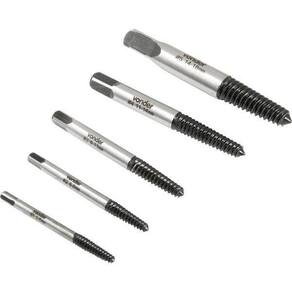 1 jogo de saca-parafusos, composto por um estojo plástico com 5 peças, sendo: nº 1, nº 2, nº 3, nº 4 e nº 5 indicado para retirar parafusos quebrados em peças ou máquinas. Utilizado com o vira-macho não acompanha . Para parafusos de 1/8 a 3/4 fabricado em crmo aço cromo molibdênio , proporcionando maior resistência e durabilidade. Possui estojo plástico que facilita a acomodação e organização das peças. Detalhes técnicos