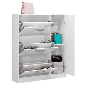 A sapateira é feita em MDP. Capacidade de calçados 18 pares, possui 4 portas sendo 3 delas articuladas.
