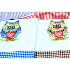 Jogo de Semaninha Ponto Cruz com Barrado - Corujinha
