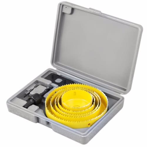 Para uso em : Madeira, policarbonato,acrílico,mdf. - Material: Aço, PP. - Cor: Preto ou Amarelo Profissional PRO . Profundidade de corte: 25 mm. Acompanha estojo plástico. - Contém 8 peças: 1 Mandril 9.5 mm com H.C.S. broca piloto 6 mm. 1 Encaixe Chave allen 2.5 mm. 5 serras copos: 64 mm 76 mm 89 mm 102 mm 127 mm. Medidas em polegadas: 2.1/2 , 3 , 3.1/2 , 4 , e 5 Ean: 7898094338726