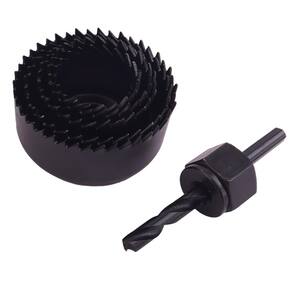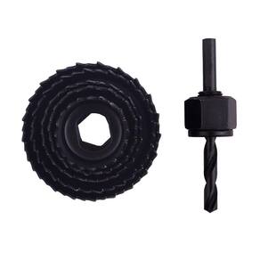 05 serra-copo de diferentes diâmetros e 01 suporte adaptador com broca: - 11/4 (32mm) - 11/2 (38 mm)