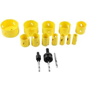 Contem: 01 Serra Copo Bi-Metálica 16 mm - 5/8" 01 Serra Copo Bi-Metálica 19 mm - 3/4" 01 Serra Copo Bi-Metálica 22 mm - 7/8" 01 Serra Copo Bi-Metálica 25 mm - 1" 01 Serra Copo Bi-Metálica 32 mm - 1.1/4" 01 Serra Copo Bi-Metálica 35 mm - 1.3/8" 0 Serra Copo Bi-Metálica 38 mm - 1.1/2" 01 Serra Copo Bi-Metálica 44 mm - 1.3/4" 01 Serra Copo Bi-Metálica 51 mm - 2" 01 Serra Copo Bi-Metálica 57 mm - 2.1/4" 01 Serra Copo Bi-Metálica 64 mm - 2.1/2" 01 Serra Copo Bi-Metálica 76 mm - 3" 01 Broca para serra copo 1/4"x74 mm 01 Broca piloto com suporte para serra copo encaixe 3/8" rosca 1/2" 01 Broca piloto com suporte para serra copo encaixe 7/16" rosca 5/8"