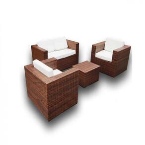 Jogo de Sofá, Poltronas e Mesa em Alumínio Paris em Fibra Sintética para Área, Jardim, Edícula e Piscina Trama - Marrom