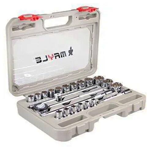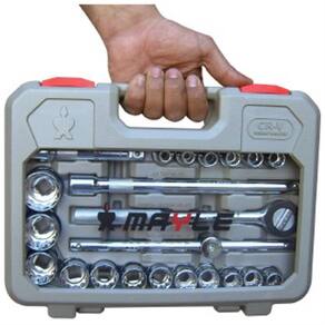 18 Soquetes estriados: 8, 9, 10, 11, 12, 13, 14, 15, 16, 17, 18, 19, 21, 22, 24, 27, 30 e 32 mm