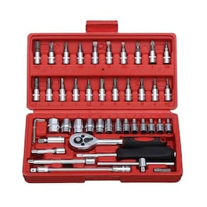 - 46 peças: Um conjunto abrangente de soquetes, catracas e chaves Allen para lidar com uma ampla de tarefas.