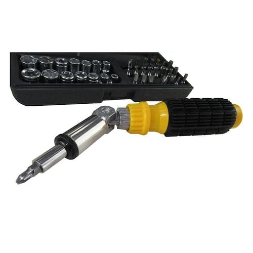 Jogo De Soquete Encaixe De 1/4 Com 41 Peças 5520 - Titanium Jogo de soquetes 1/4 com 41 peças e catraca reversível e articulada.Características gerais do produto:Acompanha o produto: 1 catraca reversível e articulada 1 adaptador 7 soquetes em polegadas: 5/32, 3/16", 7/32", 1/4, 9/32", 5/16", 11/32 7 soquetes em milímetros: 4, 5, 5.5, 6, 7, 8, 9 mm 1 adaptador para soquetes 8 allen: 1/16, 3/32, 1/8, 5/32, 3/16, 7/32, 1/4, 5/64 7 torx: t10, t15, t20, t25, t27, t30 e t40 3 phillips: 1, 2 e 3 2 quadrado: s1 e s2 3 fenda: 3/16", 1/4", 9/32" Estojo plásticoGarantia: 6 meses