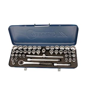 Jogo de Soquete Estriado com 43 peças 10 à 32 MM e 3/8" à 1.1/4" Encaixe 1/2" - Gedore 015560