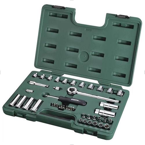 Jogo de soquetes sextavado fabricado em aço cromo vanádio proporcionando resistência e durabilidade, com cabo fixo que pode ser utilizado como chave canhão, pontas philips, fendas e tork, além de dois soquetes de vela e soquetes longos, indicado para o público automotivo em geral