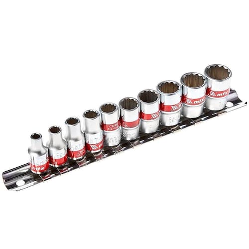Seja bem vindo a DD MáquinasO Jogo de soquetes de perfil universal Spline, com encaixe quadrado de 1/2”, é produzido em aço cromo-vanádio forjado e temperado, proporcionando maior resistência e durabilidade. Composto por 10 soquetes de 10 a 22mm.- Especificações técnicas::: Jogo de soquetes Spline:: Composto por 10 soquetes de medidas: 10, 12, 13, 14, 15, 16, 17, 19, 21 e 22mm.:: Feito em aço cromo-vanádio (CrV):: Acabamento polido:: Encaixe quadrado: 1/2"*Imagens Meramente Ilustrativas.Todas as Informações divulgadas são de responsabilidade do Fabricante/Fornecedor.Tome cuidado ao manusear e utilizar o aparelho.