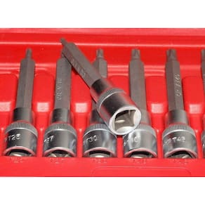 - 09 Soquetes com ponta torx: T20,T25,T27,T30,T40,T45,T50,T55,T60.