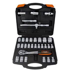 Jogo de Soquetes 1/2 32Pç Foxlux Jogo de soquetes com 32 peças, produzidos em cromo vanádio que proporciona maior resistência e durabilidade. Chaves soquetes intercambiáveis: alia a praticidade de uso com as variadas combinações de medidas. Kit Contém: 32 Peças Soquetes 1/2 De 6pontos: 8, 9, 10, 11, 12, 13, 14, 15, 16, 17, 18, 19, 20, 21, 22, 24, 27, 30,32mm) Soquetes 1/2 De 12 Pontos: 10, 12, 14, 15, 17, 19mm) Junta Universal 1/2 Soquete Vela 16 E 21mm Extensão Barra 5 E 10 Adaptadores De 3 Vias Chave Catraca 1/2
