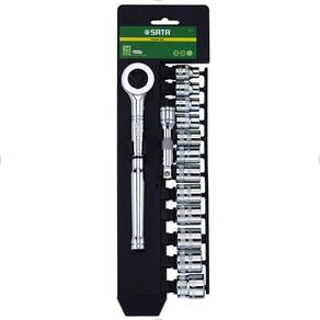 Jogo de Soquetes com 14 peças é ideal para aperto e desaperto de parafusos e porcas, oferecendo maior vantagem mecânica na aplicação do torque. Fabricado em aço de qualidade, garantindo resistência e maior vida útil da peça. Itens que Compoem: 01 Catraca 8 01 Extensão 3 12 Soquetes: 3/8: 8, 9, 10, 11, 12, 13, 14, 15, 16, 17, 18 e 19 mm Comprimento cm : 9,80 Largura cm : 3,19 Altura cm : 33,20 Peso kg : 0,93 Marca: SATA Modelo: ST09523