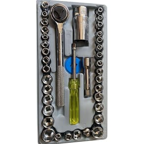 Jogo de soquete sextavado 1/4"e 3/8” com 40 peças é uma ferramenta projetada para tornar o trabalho de aperto e soltura de porcas e parafusos muito mais rápido e leve.