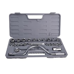 Jogo de Soquetes e Chave Catraca 25 Peças 1/2 para Manutenção Automotiva e Mecânica com Maleta Reforçada Yeet