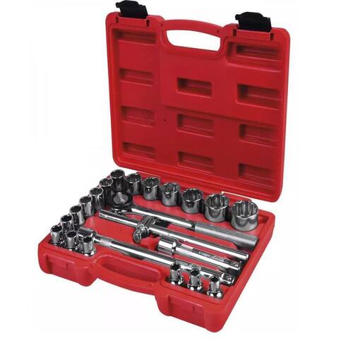 Jogo de Soquetes Estriados Cromo-Vanádio 22 Peças 434892 Worker - Modelo pito/; - Aço cromo vanádio; - Acabamento cromado; - Estojo plástico resistente. Itens Inclusos: - Soquetes: 8 mm - 9 mm - 10 mm - 11 mm - 12 mm - 13 mm - 14 mm - 15 mm - 16 mm - 17 mm - 18 mm - 19 mm - 21 mm - 22 mm - 24 mm - 27 mm - 30 mm - 32 mm; - 1 Catraca reversível 10 72 dentes ; - 1 Extensão 5 - 1 Extensão 10 - 1 Corpo cabo t 10 de 3 meses oferecida pelo fabricante; Imagens meramente ilustrativas; Código Interno: 211534 Modelo: 434892 EAN: 7899384922131 Marca: Não Informado